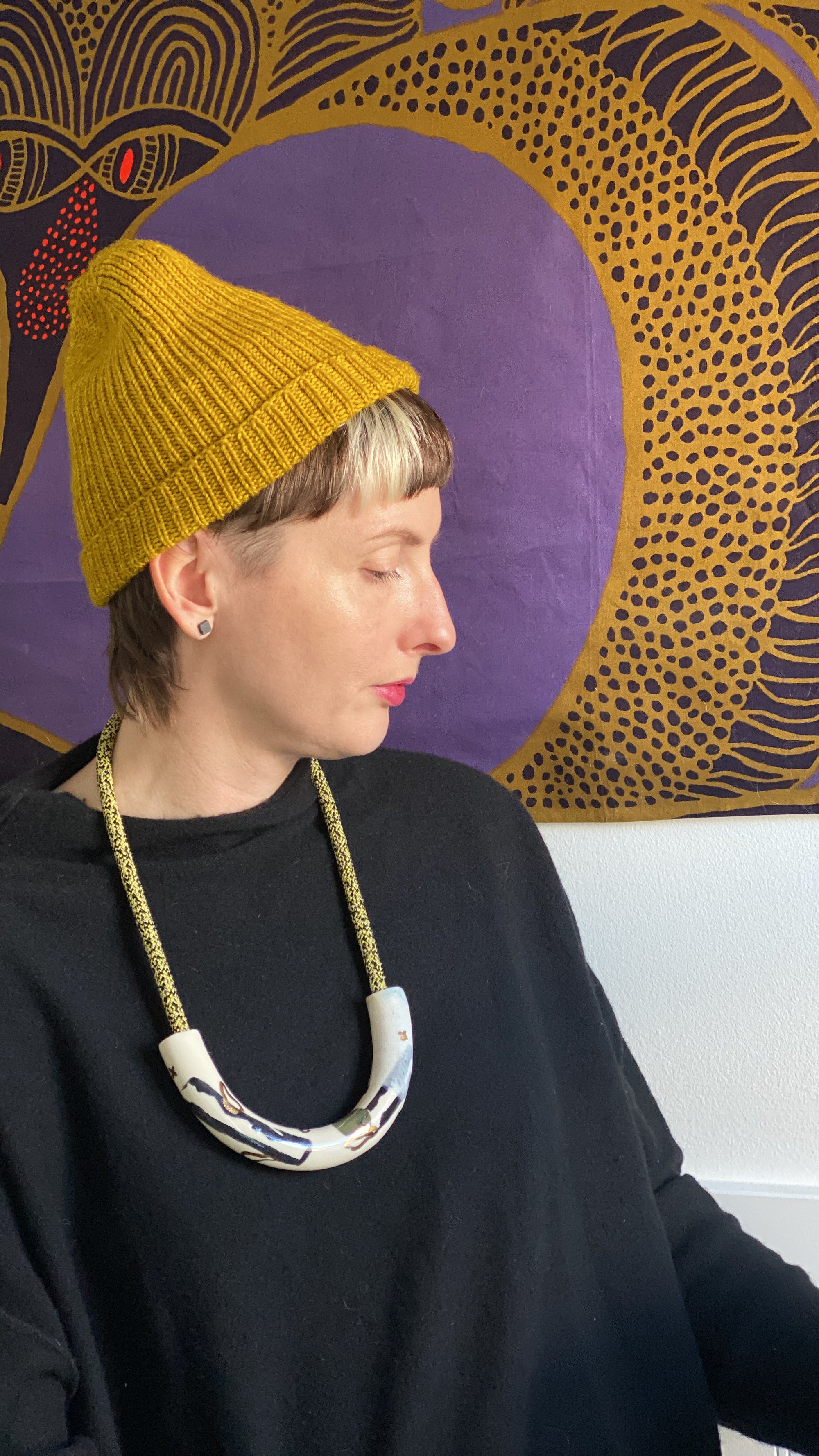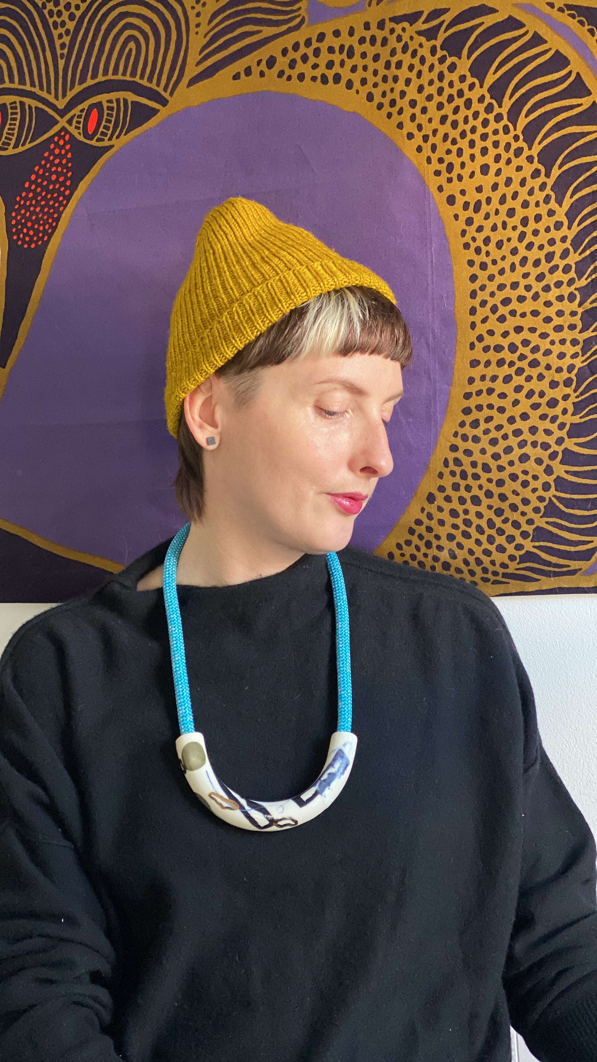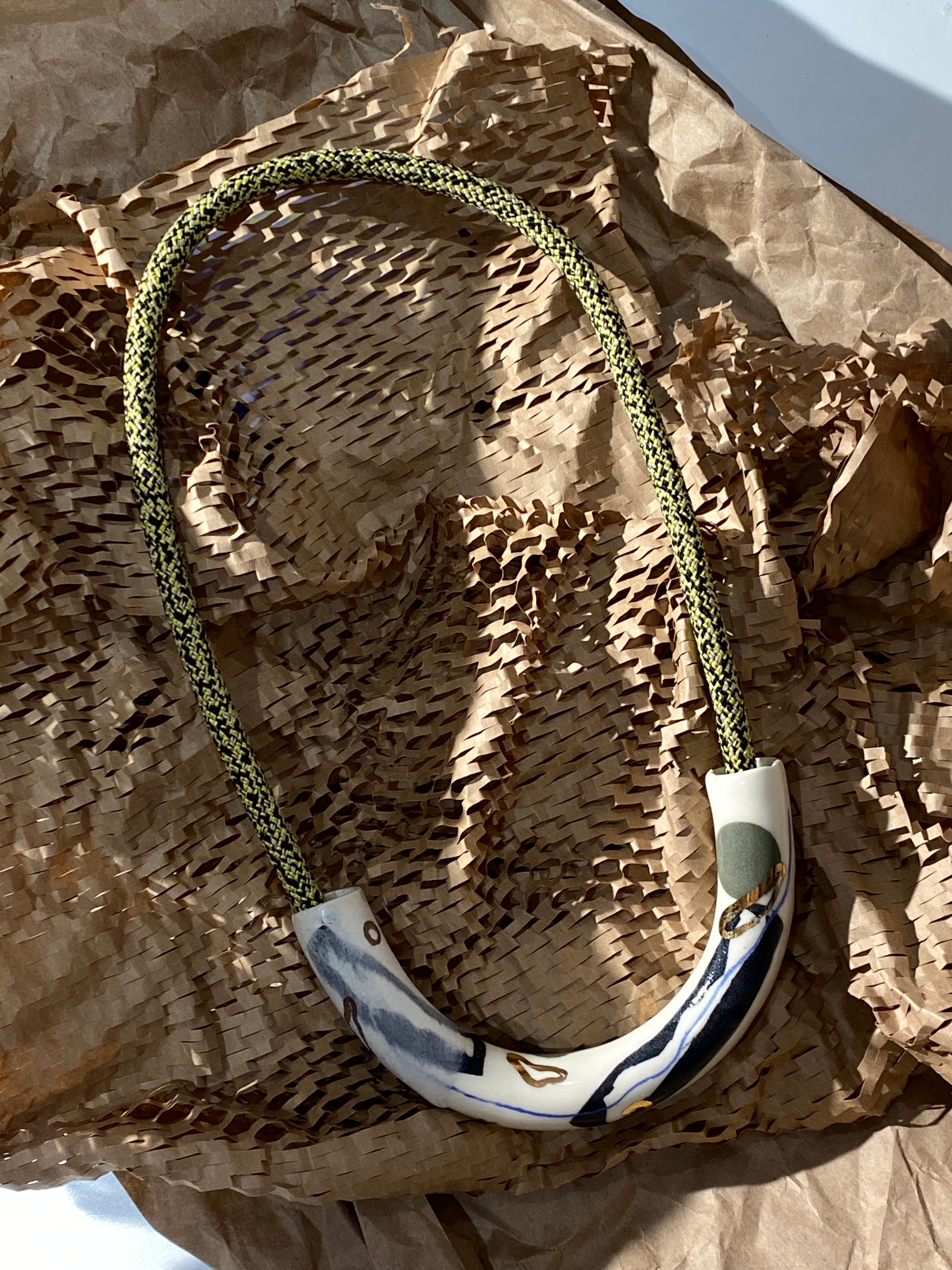 Abstract Drawings + Yellow Rope • Ceramic Necklace