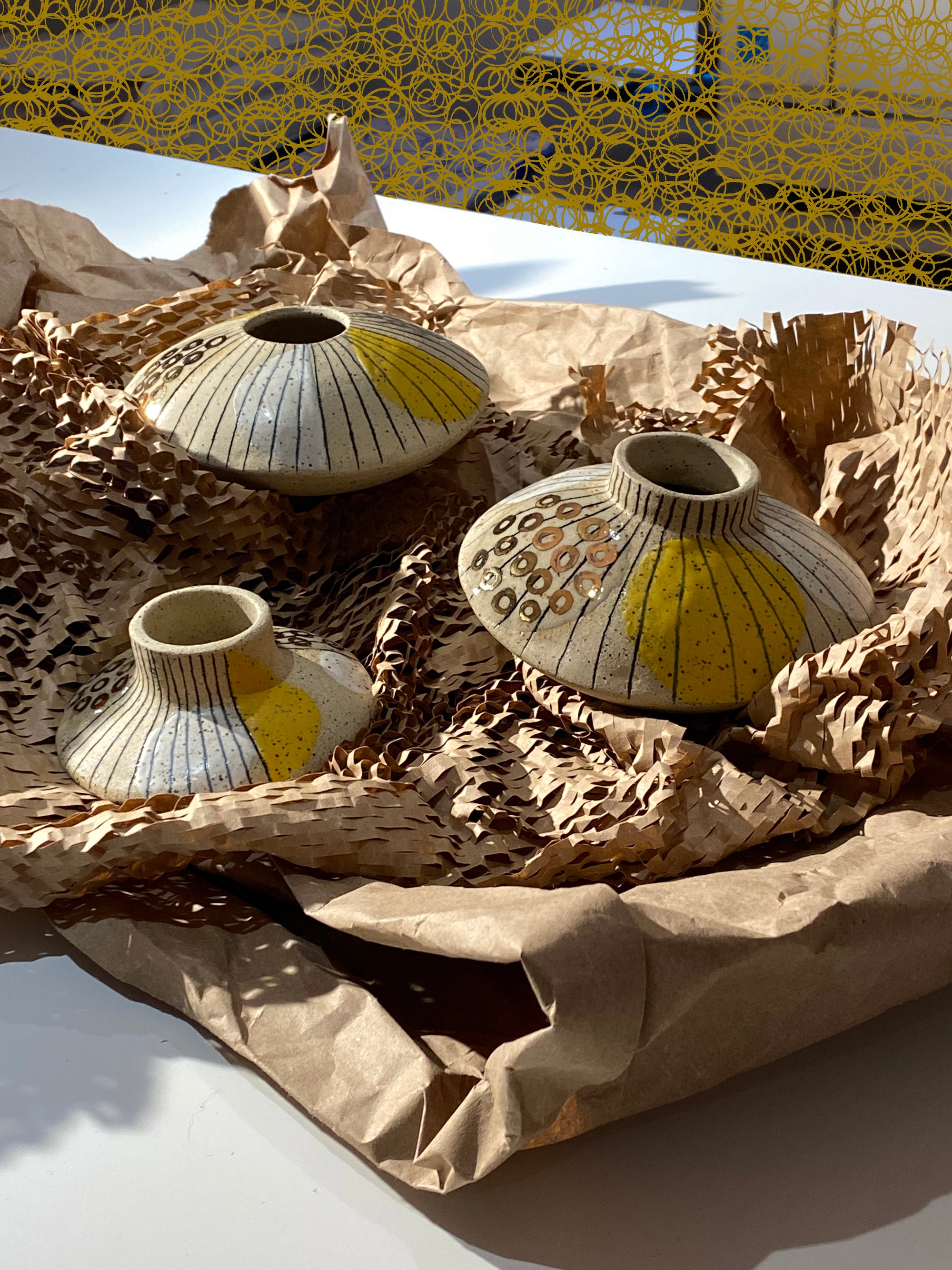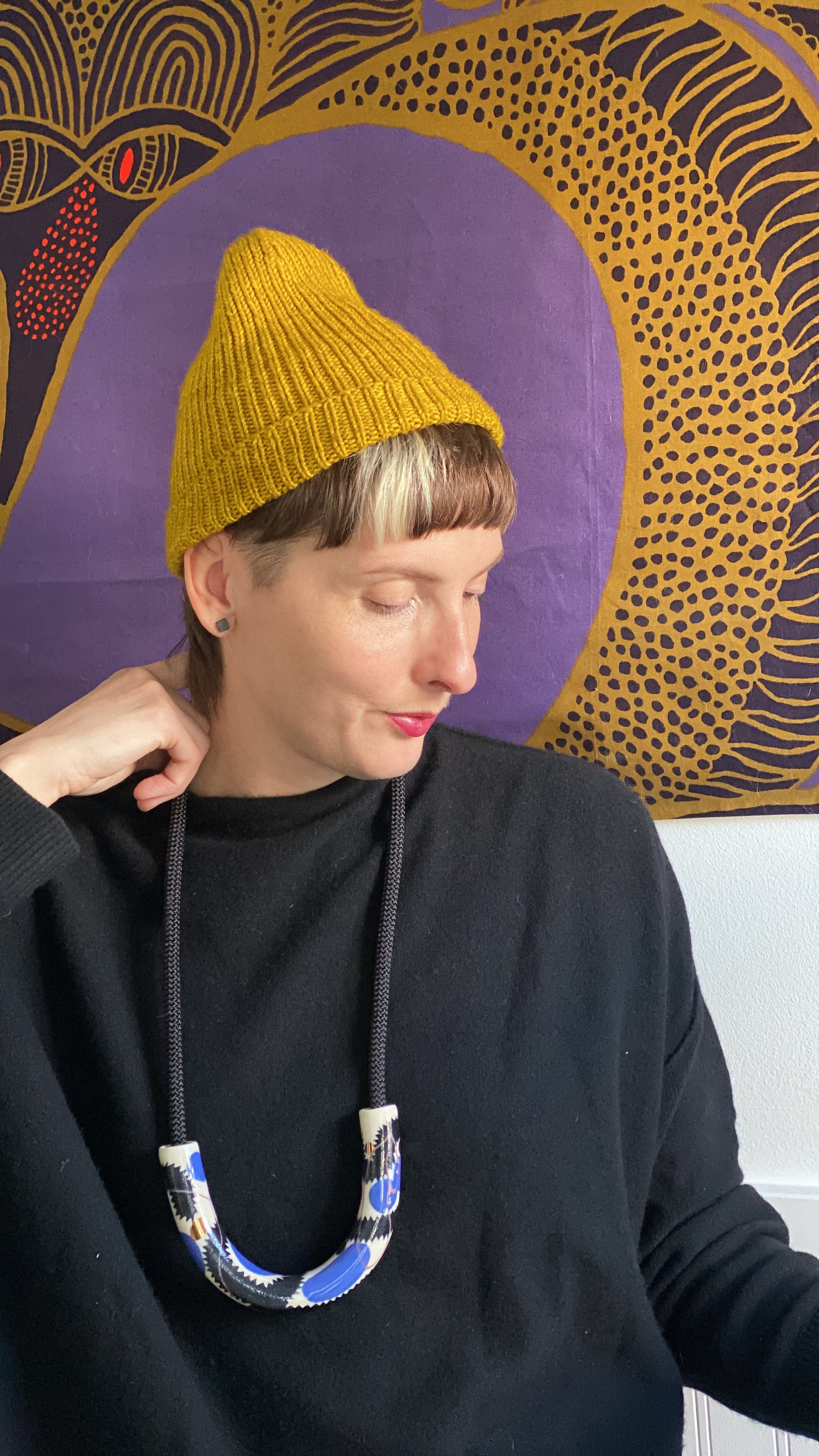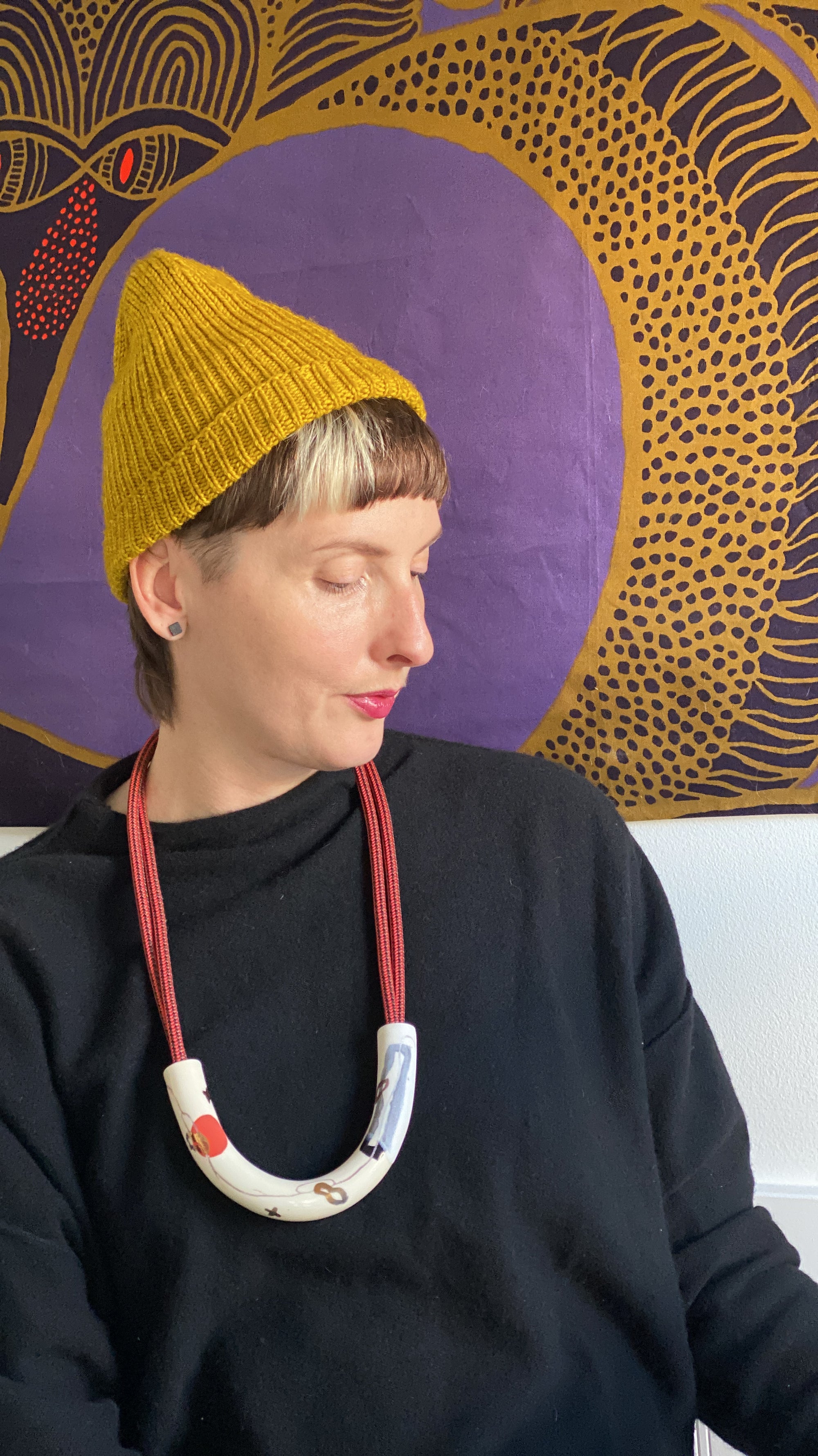 Abstract Drawings + Yellow Rope • Ceramic Necklace