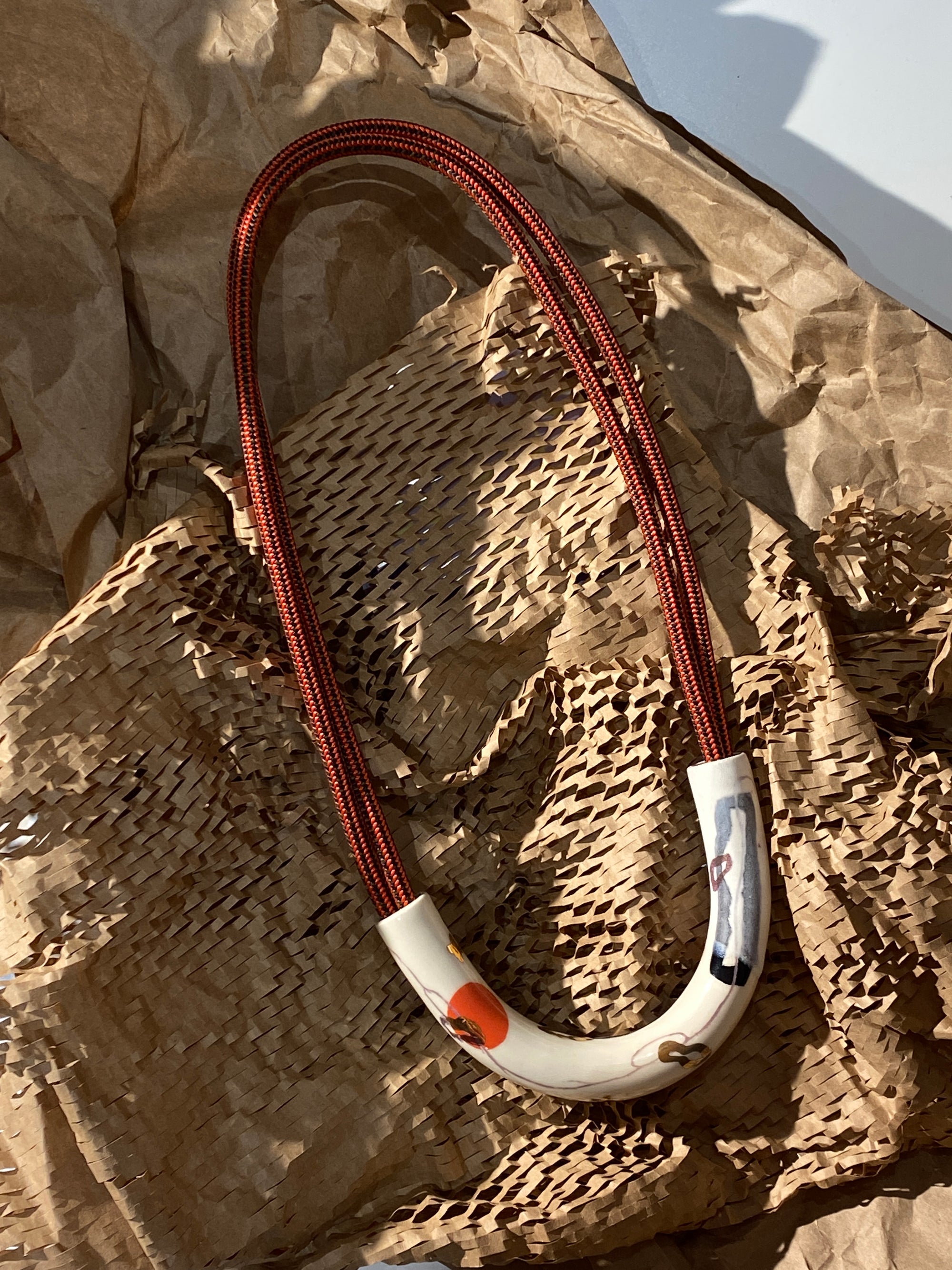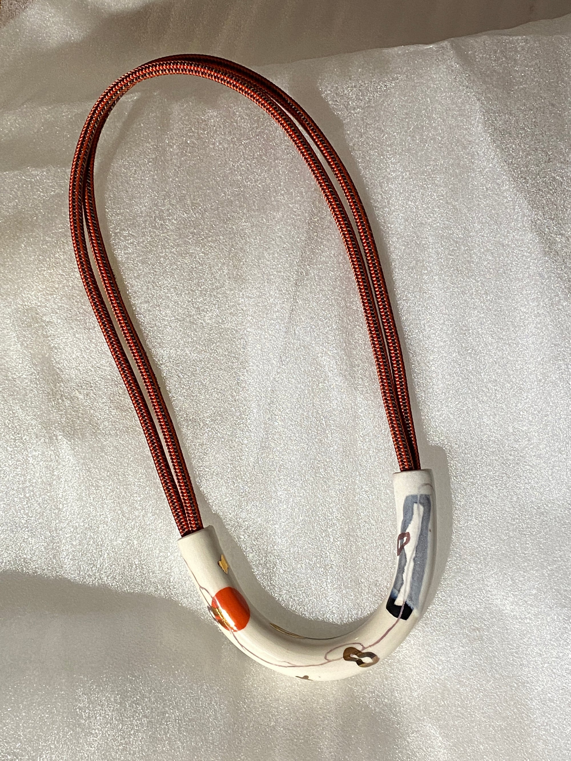 Abstract Drawings + Red Rope • Ceramic Necklace