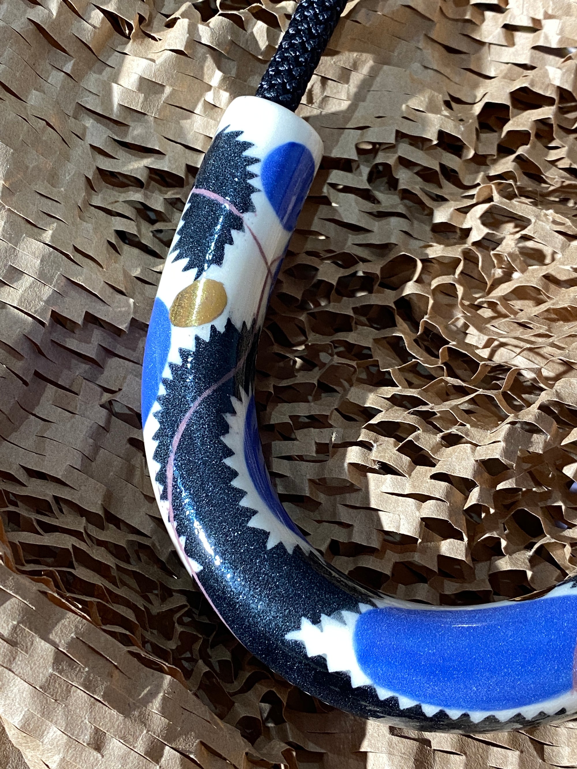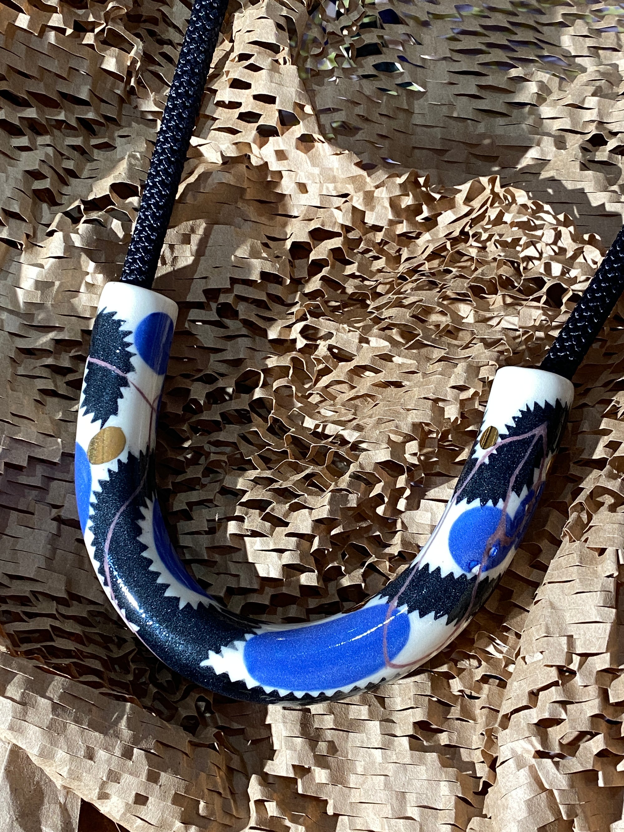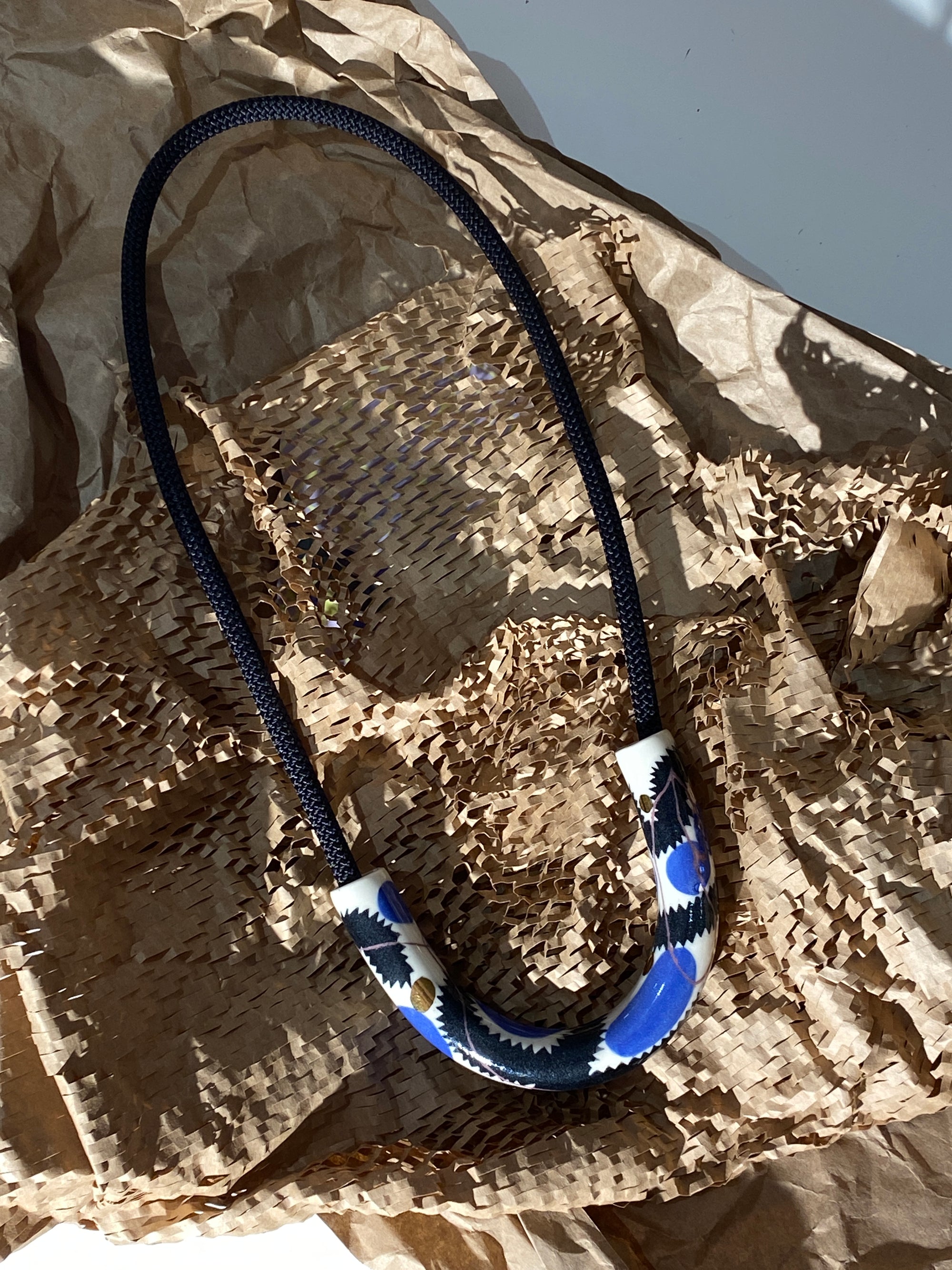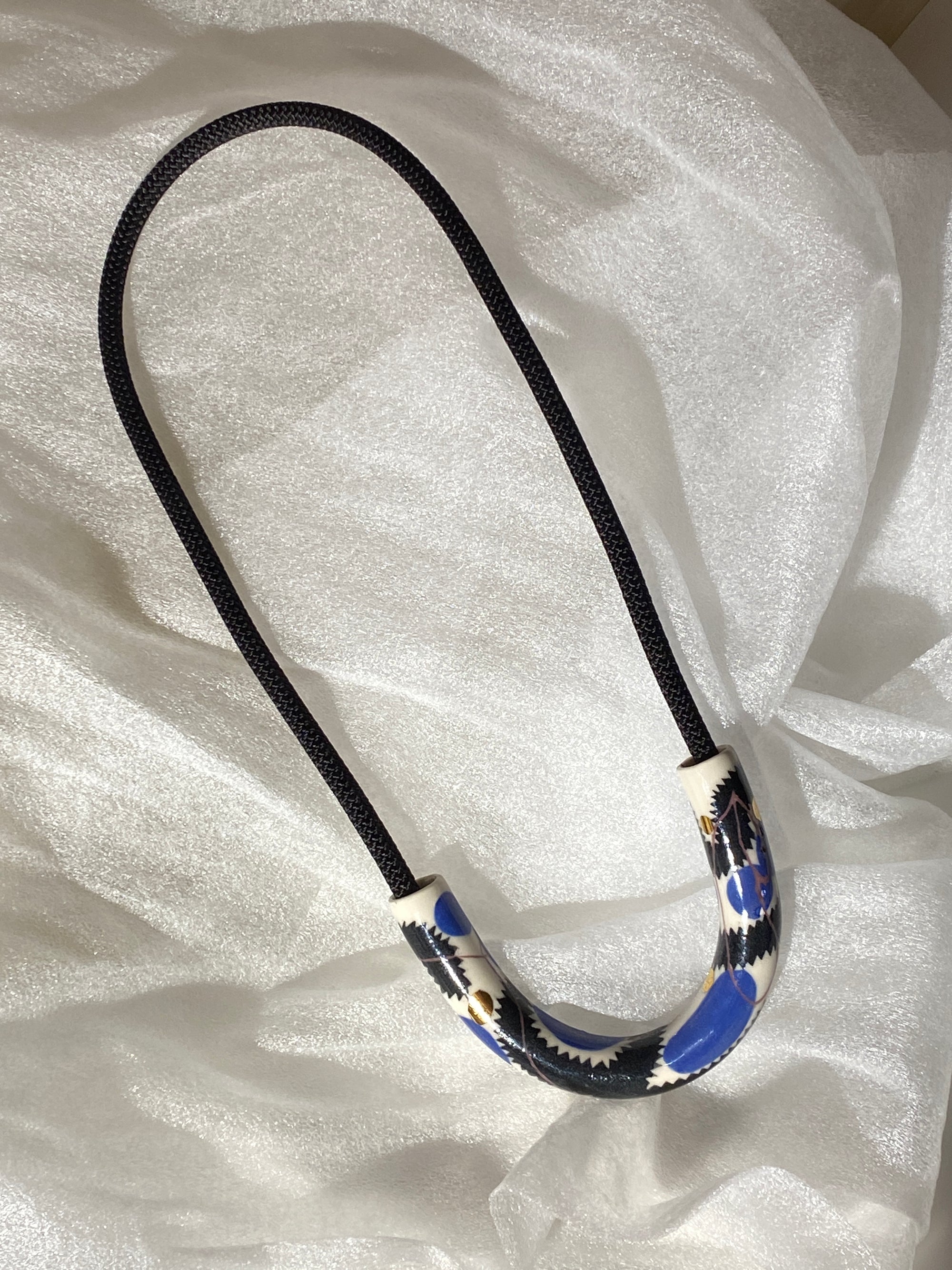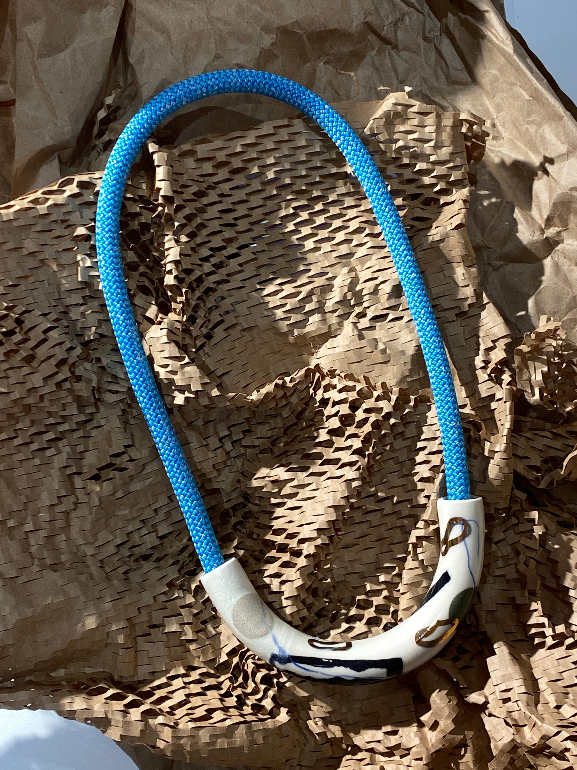 Abstract Drawings + Blue Rope • Ceramic Necklace