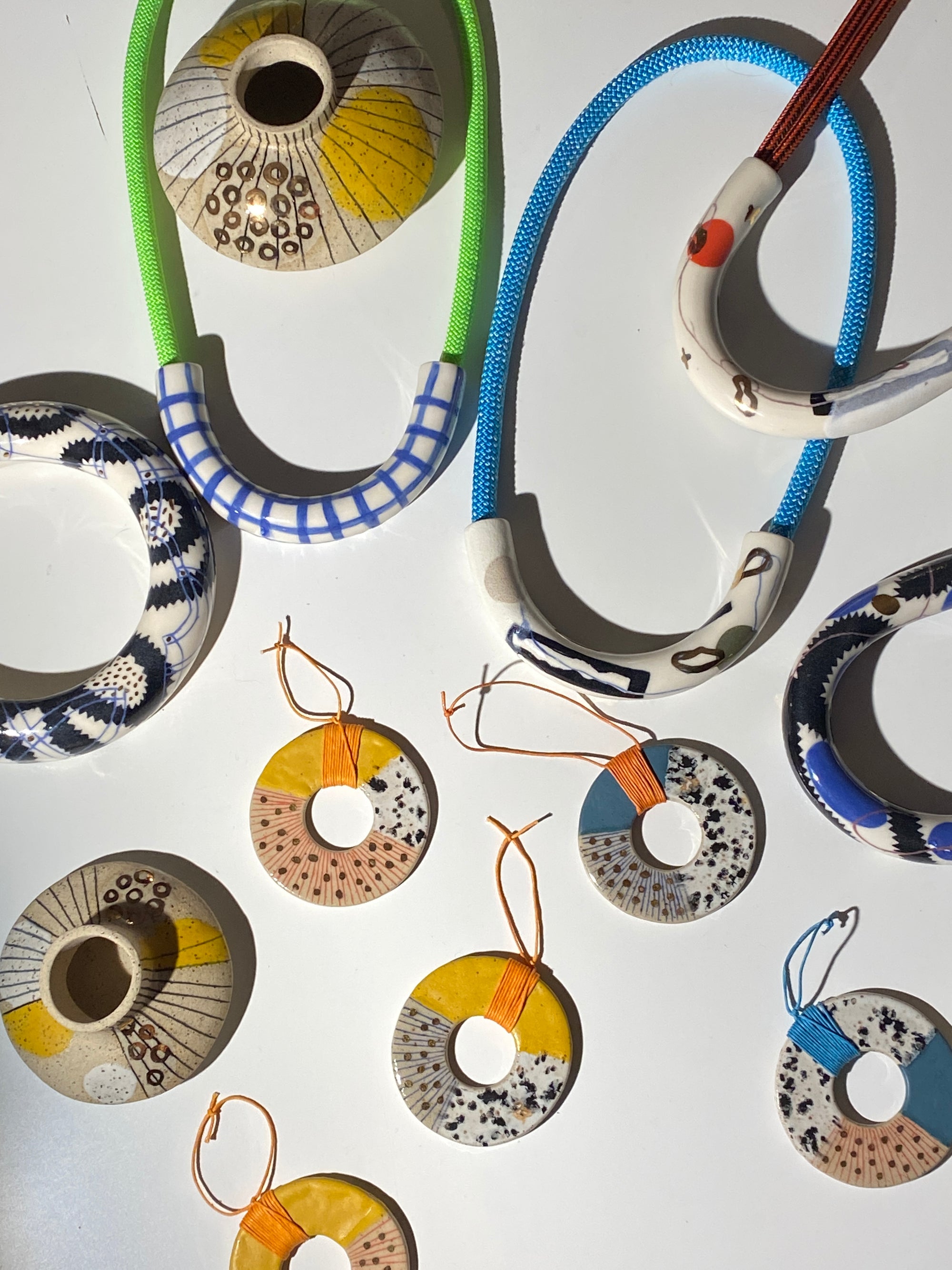 One-of-a-kind experimental ceramics and ceramic necklaces!